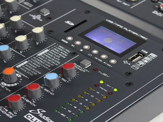 The Studiomaster Club XS8+ Bluetooth Mixer, or mixing desk, is a versatile and highly functional mixing console that is perfect for professional musicians, DJs, and audio engineers.